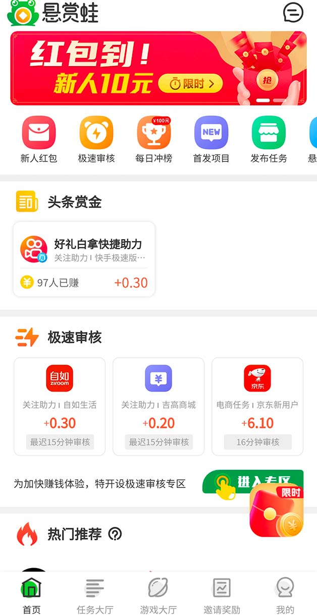 3、张姨是社区超市的收银员,下班后在悬赏蛙接“生活服务”类任务。她擅长帮邻居代收快递、代买生鲜,每单赚3-5元服务费。平台“邻里互助”板块自动匹配附近任务,她每天完成10单就能多赚30元。提现时选“满5元即提”,钱直接进银行卡,给孙子买玩具零压力。平台“双向评价”系统让服务更透明,张姨的“热心阿姨”标签吸引更多订单。她说:“悬赏蛙让我的时间更有价值,既帮了邻居又赚了菜钱,比闲着刷手机强多啦!”。