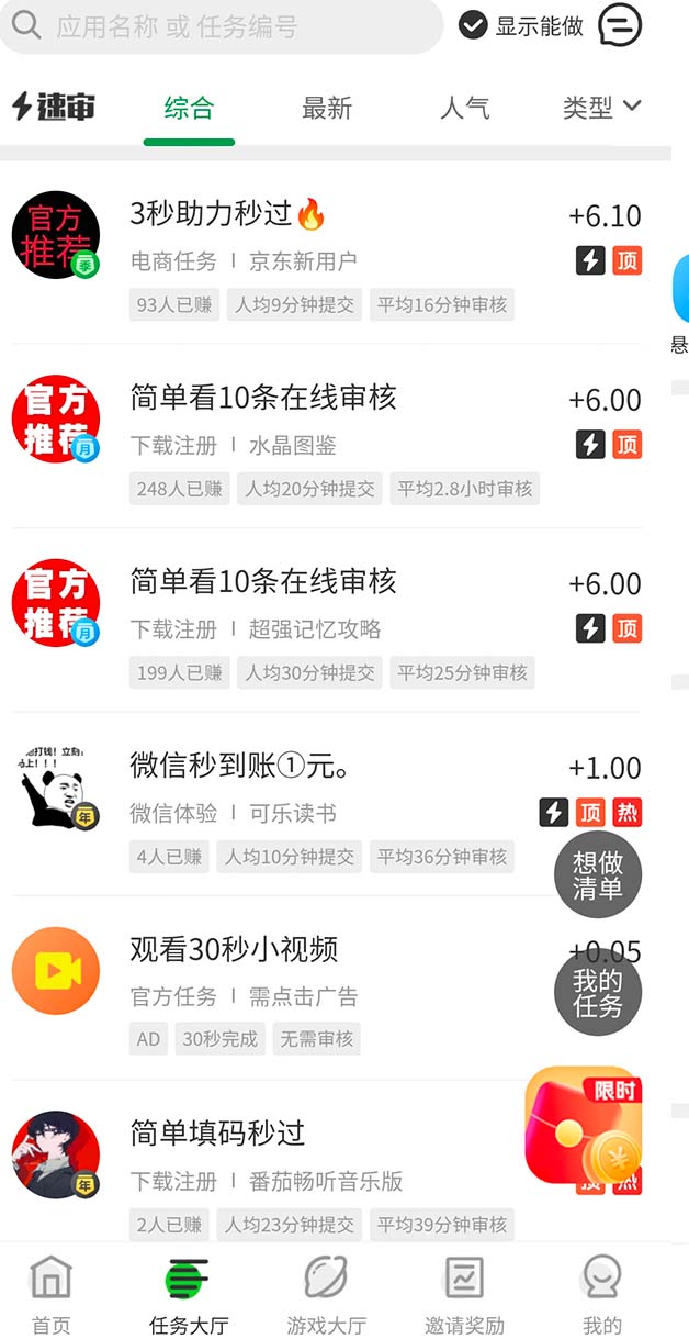 任务丰富满足多元需求:数十种悬赏类型适配不同用户,赚钱场景全覆盖。